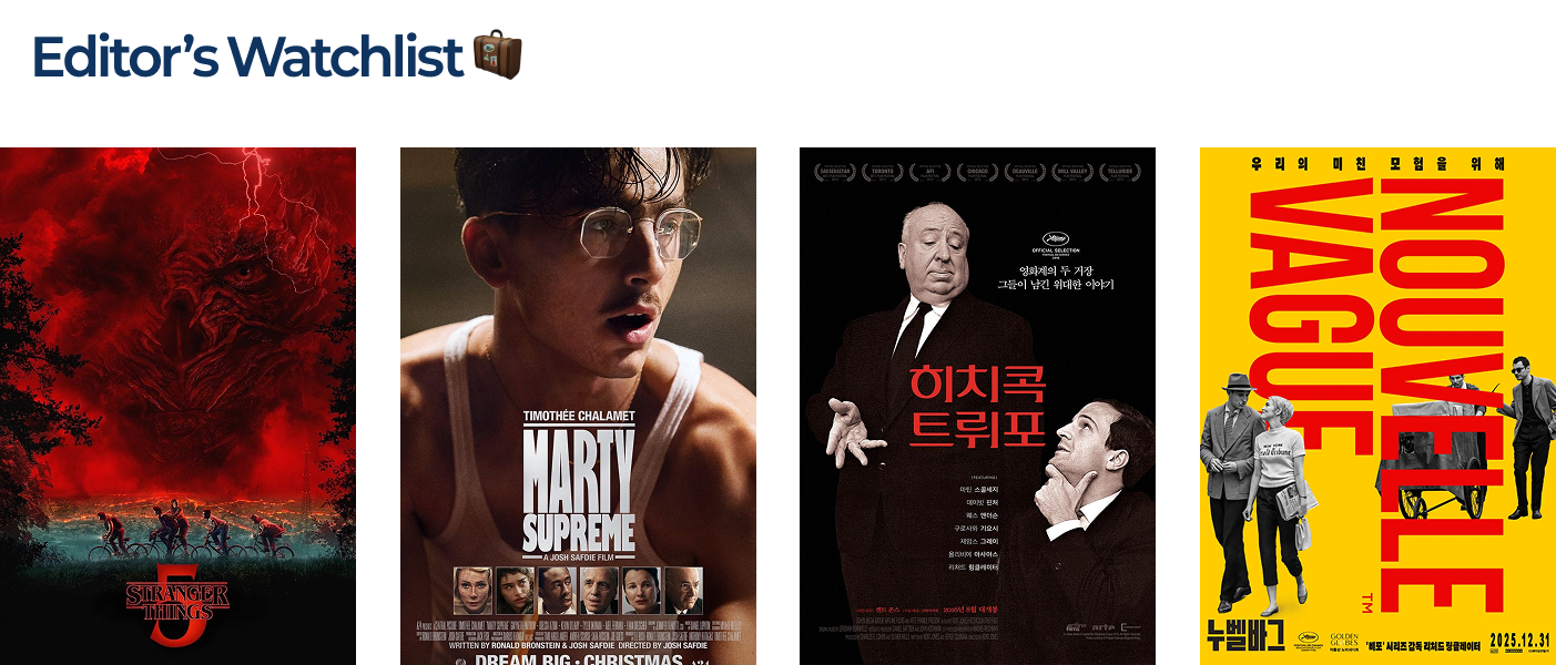 새로운 한 해를 맞이하며, 오늘(5일)부터 18일까지 2주간 2026년 씨네웨이 구독자 만족도 조사를 진행하고자 하는데요. 상영회, 굿즈, 인터뷰, 구독자들과의 소통… 뭐든 좋아요! 씨네웨이가 올 한 해 했으면 좋겠는 모든 걸 만족도 조사를 통해 알려 주세요. 결과를 바탕으로, 씨네웨이는 2026년에도 열심히 비행을 이어가 보도록 노력하겠습니다👏